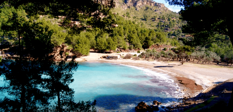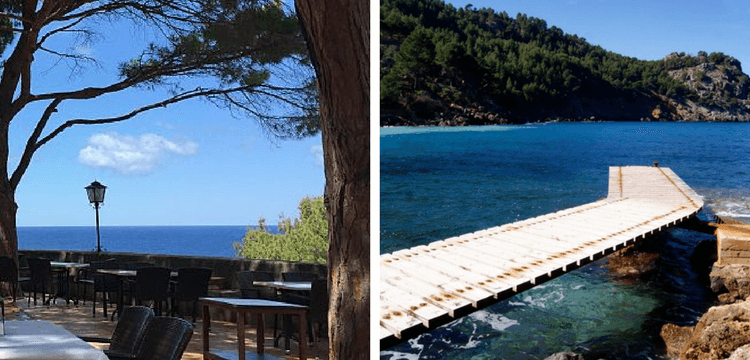Desembocando en un camino asfaltado que se bifurca y uno nos conduce hacia el Restaurante Es Vergeret, donde podremos degustar alguno de sus platos con vistas al mar (recomiendo reservar con anterioridad); y otro hacia la cala que poco a poco, se nos irá desvelando entre pinos que llegan hasta el mismo borde del mar.